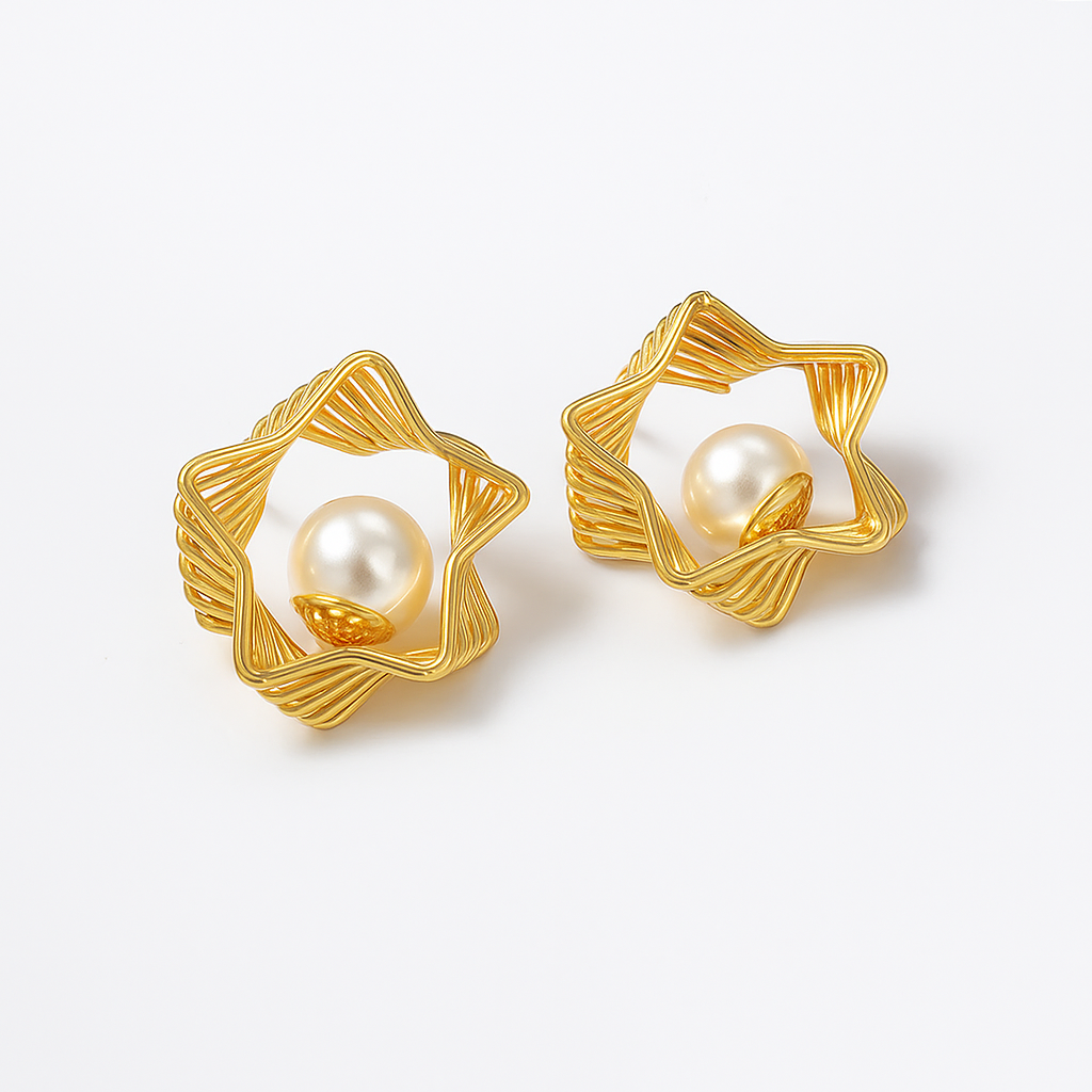 Luxury Gold Star Pearl Earrings for Women | Elegant Designer Jewelry